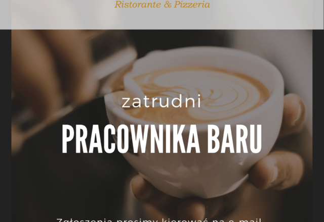 Cristina Ristorante & Pizzeria poszukuje sumiennej i rzetelnej osoby do pracy w barze. Zainteresowanych zapraszamy do kontaktu!