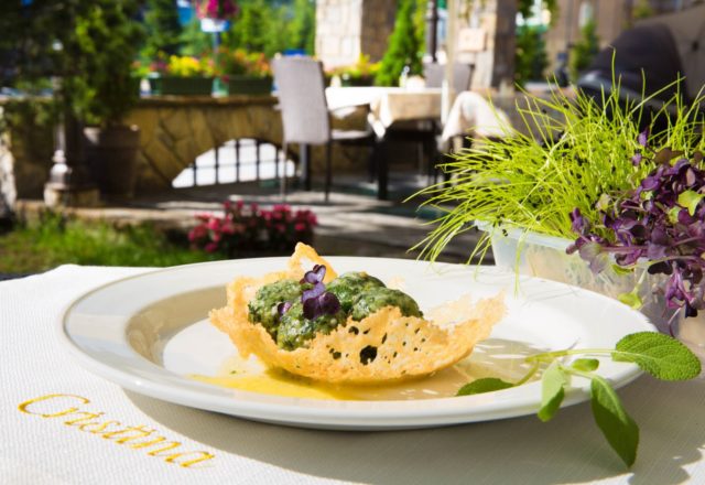 Lekkie, pożywne danie również dla wegetarian! Spośród przystawek w Cristinie polecamy kulki szpinakowe podawane z masłem szałwiowym w koszyczku z parmezanu. Oprócz swojej dobroczynnej mocy (bogactwa witaminy C, potasu i beta-karotenu) szpinak w tym wydaniu jest po prostu przepyszny!