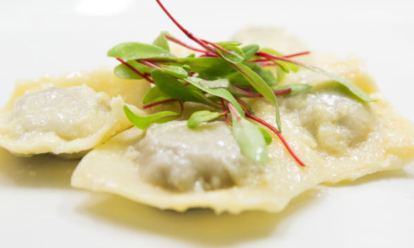 Homemade lamb–filled ravioli in sage butter, Grana Padano