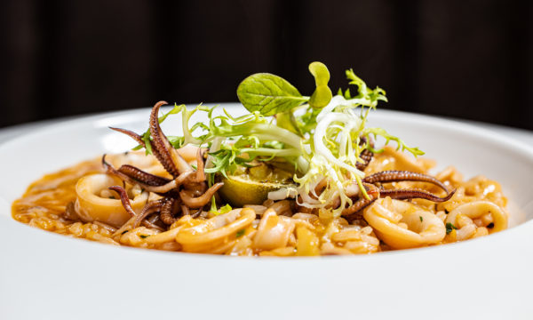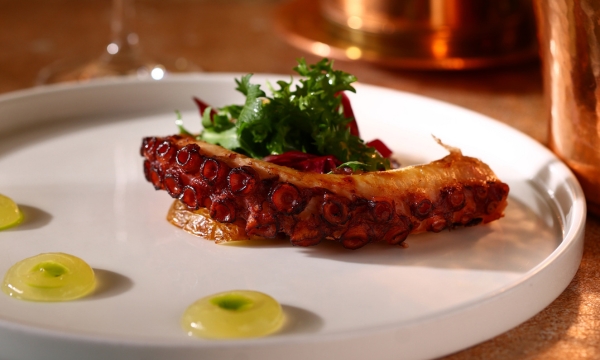 Grilled octopus, ratte potatoes, lemon gel, fish sauce, salads