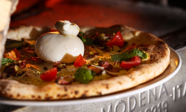 Tomato sauce, mozzarella cheese, spicy spianata, caramelized onion, Burrata cheese, Grana Padano cheese, chili honey, oregano